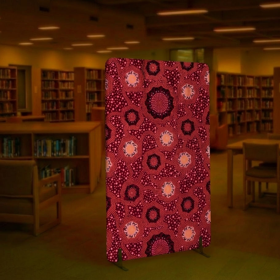 Discover the essence of Australian heritage with the 1800Highx1000Wide Partitions in Indigenous Fabric, exclusively from Rivergum Range. These freestanding partitions beautifully integrate traditional Aboriginal designs, making them a perfect addition to any space. Crafted by Australia's premier manufacturer, they offer both style and functionality. Embrace sustainable luxury with a touch of cultural significance, ideal for offices, homes, and communal areas. They are great for dividing areas or just using as artwork and also come with timber plaques with the artist's name and details on the artwork. Elevate your interior with our unique, ethically sourced partitions that honour Australia's Indigenous artistry.