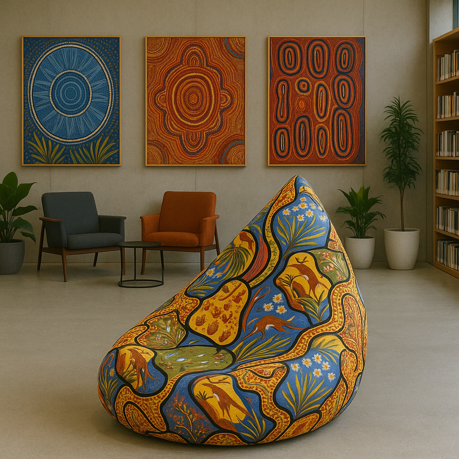 Discover the elegance and comfort of Rivergum Range's Indigenous Bean Bags filled with crumbed foam, a true testament to Australia's rich Aboriginal heritage. Perfect for any setting, our bean bags blend traditional design with superior comfort, making them ideal for relaxing and unwinding. As Australia's premier manufacturer and supplier of Freestanding Partitions, Bean Bags, and Aboriginal furniture, we are dedicated to celebrating and preserving indigenous artistry. Bring a piece of history and culture into your space with these meticulously crafted pieces from Rivergum Range. Picture shown depending on how much foam is in Bean bags or the way you have shaped it.